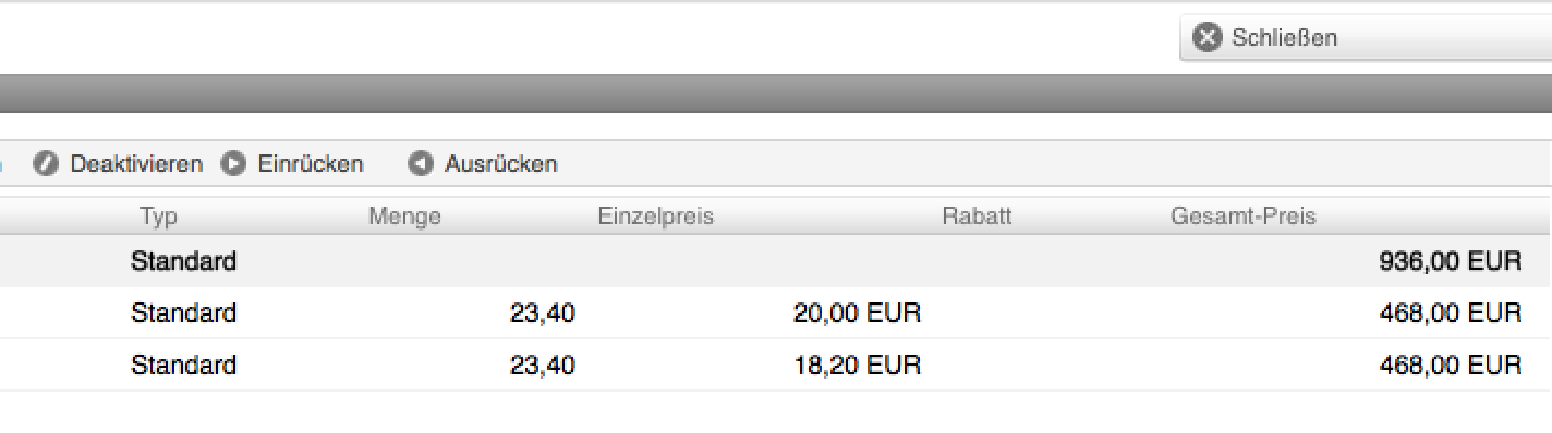 Die Summer meiner Position muss am Ende 425, 88 sein und nicht, wie in meinem Screenshot 468.-