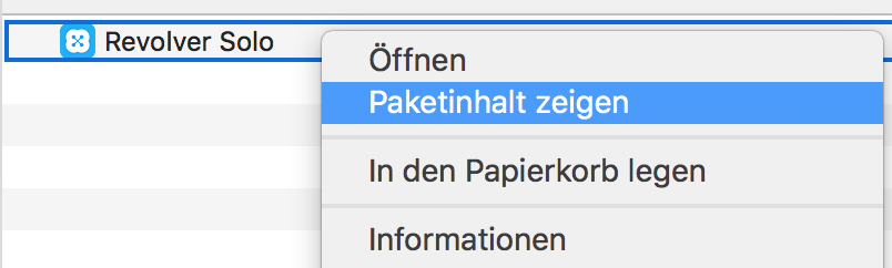 Mit "Rechts-Klick" auf das Revolverprogramm über "Paketinhalt zeigen"