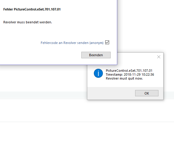 Fehlermeldung: PictureControl.eSet.701.107.01