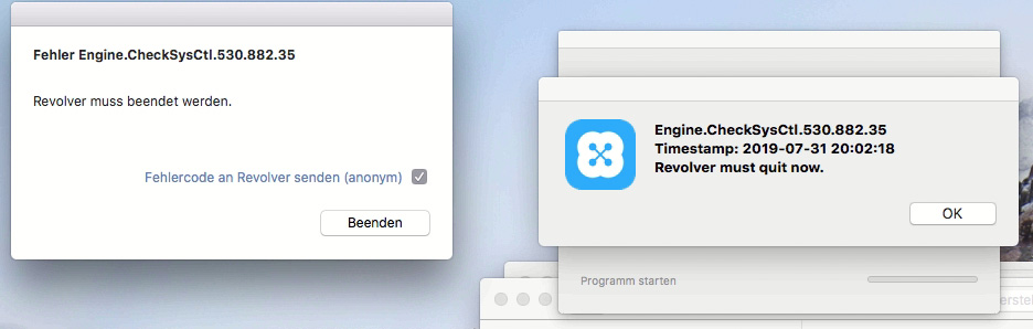 Ich erhalte beim Starten des Revolver Office 8.8.2(4401) eine Fehlermeldung: