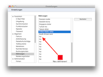 Die vorhandene Währung für den Euro müssen Sie zuerst deaktivieren, dann unter ‚frei‘ mit den entsprechenden Umrechnungskurs neu definieren und aktiv setzen.