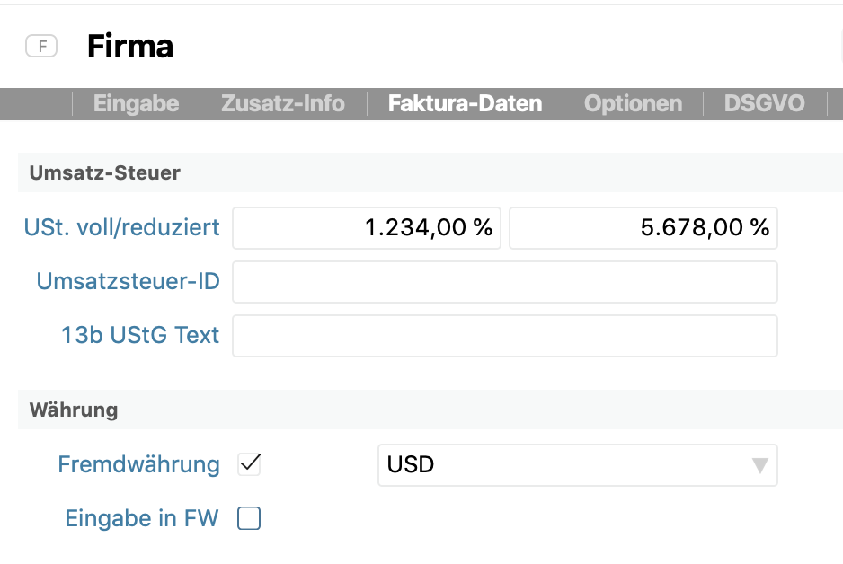 1. In den der USA-Firma Femdwährung USD auswählen.