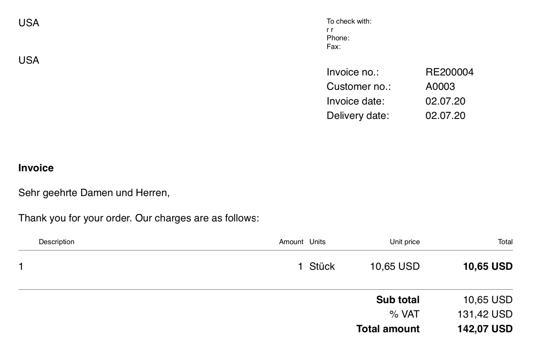 Der Ausdruck sieht etwa so aus. In älteren Versionen müssen Sie sich Ihr Druckformular im Designmodus duplizieren und entsprechend übdersetzen.