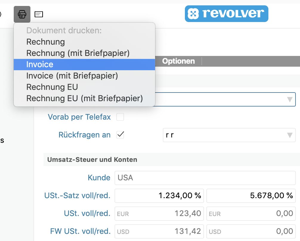 2. Rechnung erstellen (Oder neu verknüpfen) und das Englische Druckformular verwenden.
