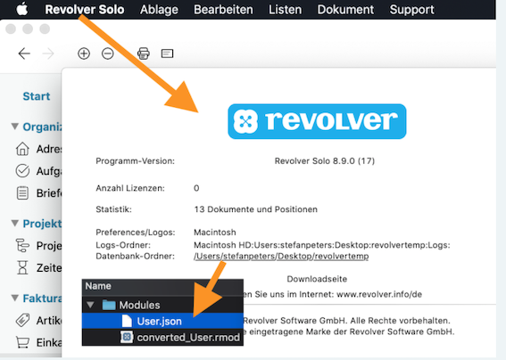 Wenn Sie noch ein Backup haben, wo dies geklappt hat, dann tauschen Sie den Modules-Ordner mit Ihrem aktuellen aus. Beim Nächsten Revolver Start lädt Revolver Ihre Anpassungen.