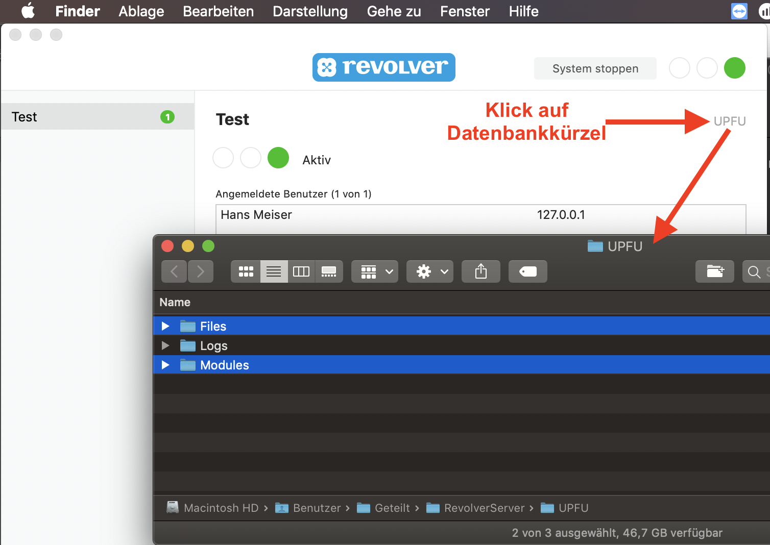 Files und Modules müssen (in manchen Fällen vor der Datenbankwiederherstellung) in den neuen Datenbankpfad kopiert werden.