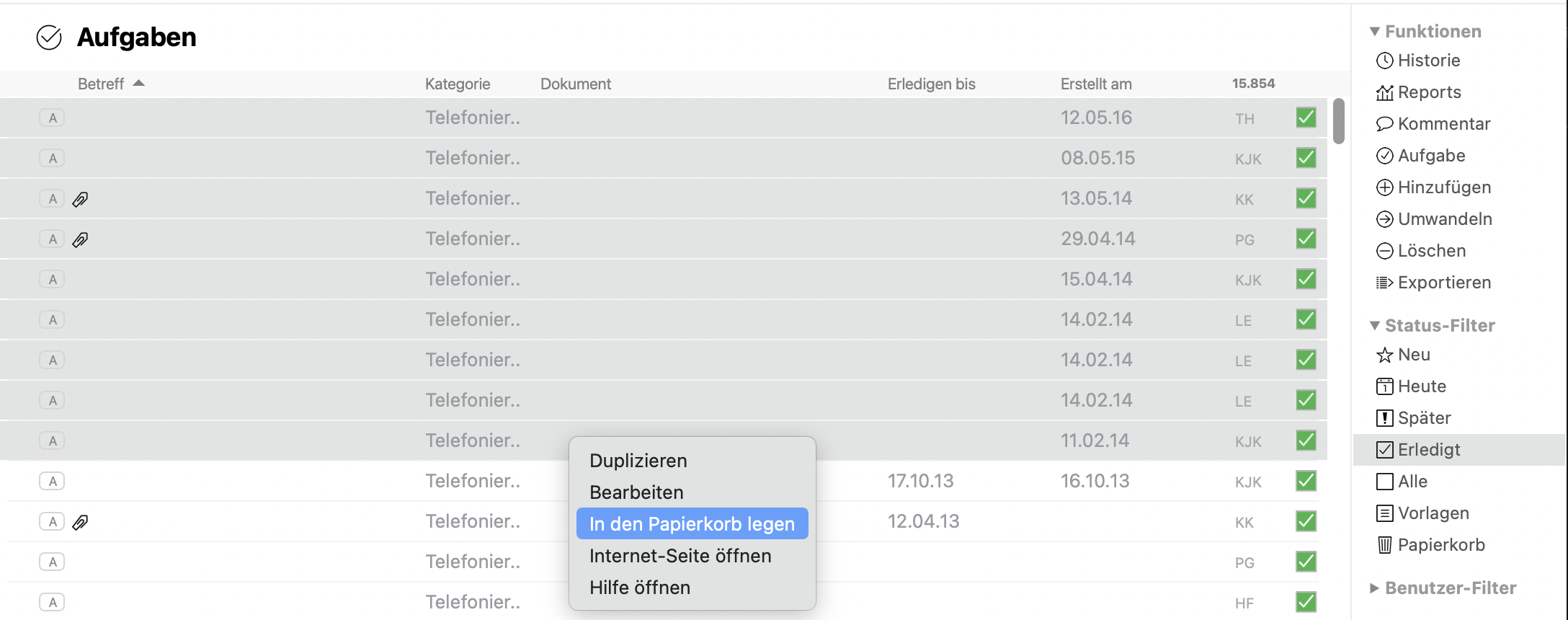 Sollte es sich um eine größere Menge oder spezielle Dokumente handeln, so können Sie auch einen kostenpflichtigen Datenbankeingriff über unseren Support beauftragen.