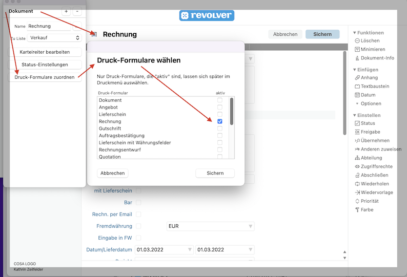 das läßt sich im Design-Modus im Dokument z.B. Rechnung - 'Druck-Formulare zuordnen' ändern.