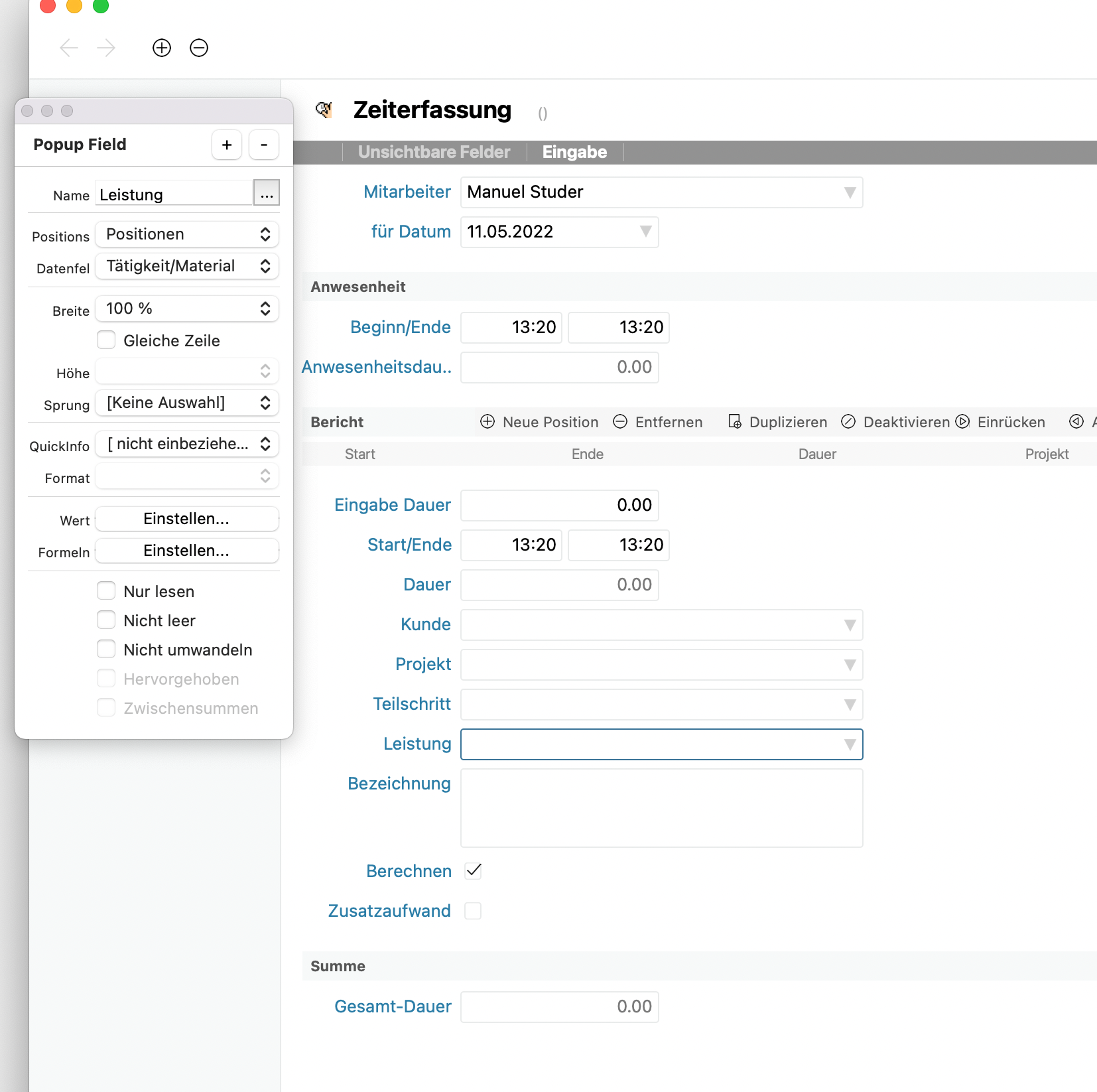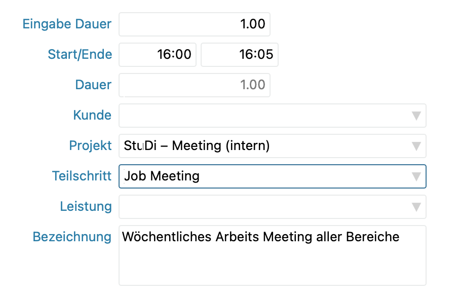 Nun muss ich also jedesmal händisch eine Leistung auswählen, was zu inkonsequenter Zeiterfassung durch Mitarbeiter führt (war das jetzt die Leistung "Akquisegespräch intern" oder "Meeting intern"?) und den Workflow ausbremst.