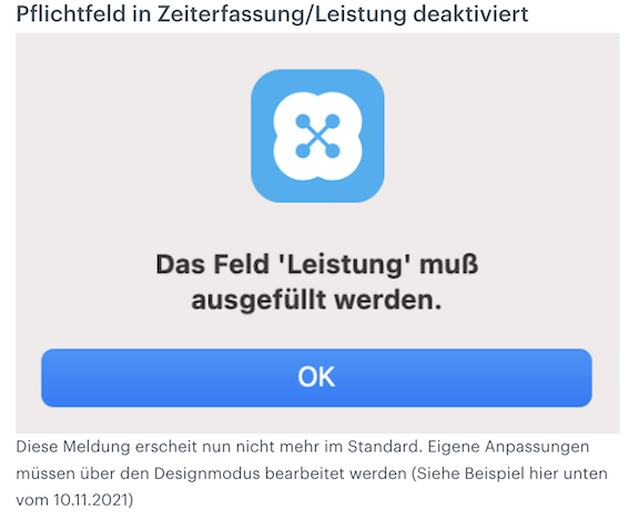 Interne Projekte lassen es nicht zu, Leistungen im Projekt anzulegen, sondern nur Teilschritte. Soweit alles OK. Wenn ich aber nun bei der Zeiterfassung meine Stunden auf ein internes Projekt buche, werde ich angemosert, eine Leistung auszuwählen. Andernfalls kann ich die Zeit nicht erfassen.
