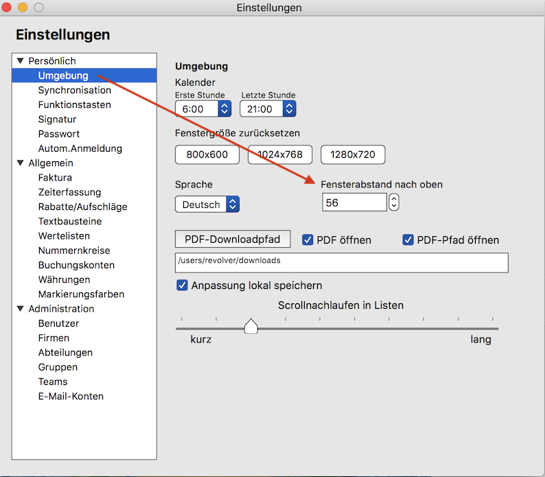 in den den Einstellungen unter Persönlich/ Umgebung können sie den Fensterabstand nach oben einstellen. Der Wert sollte nicht auf den Wert Null gesetzt werden, da ansonsten dass Revolver Fenster oben hängen bleiben kann.