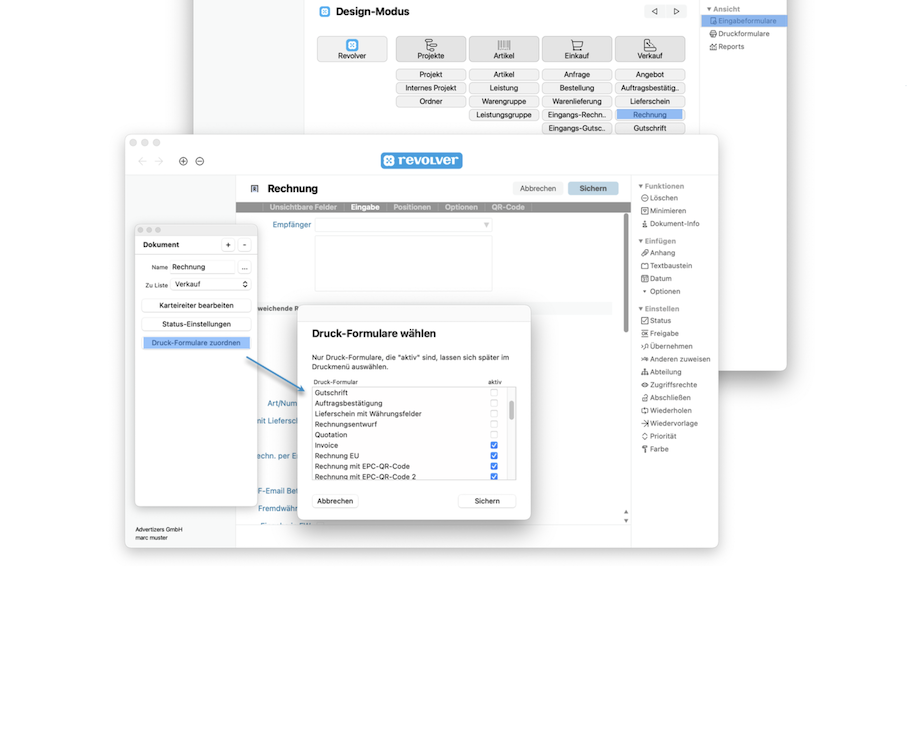 die Zuordnung der Druckformulare geschieht über die Eingabeformulare: