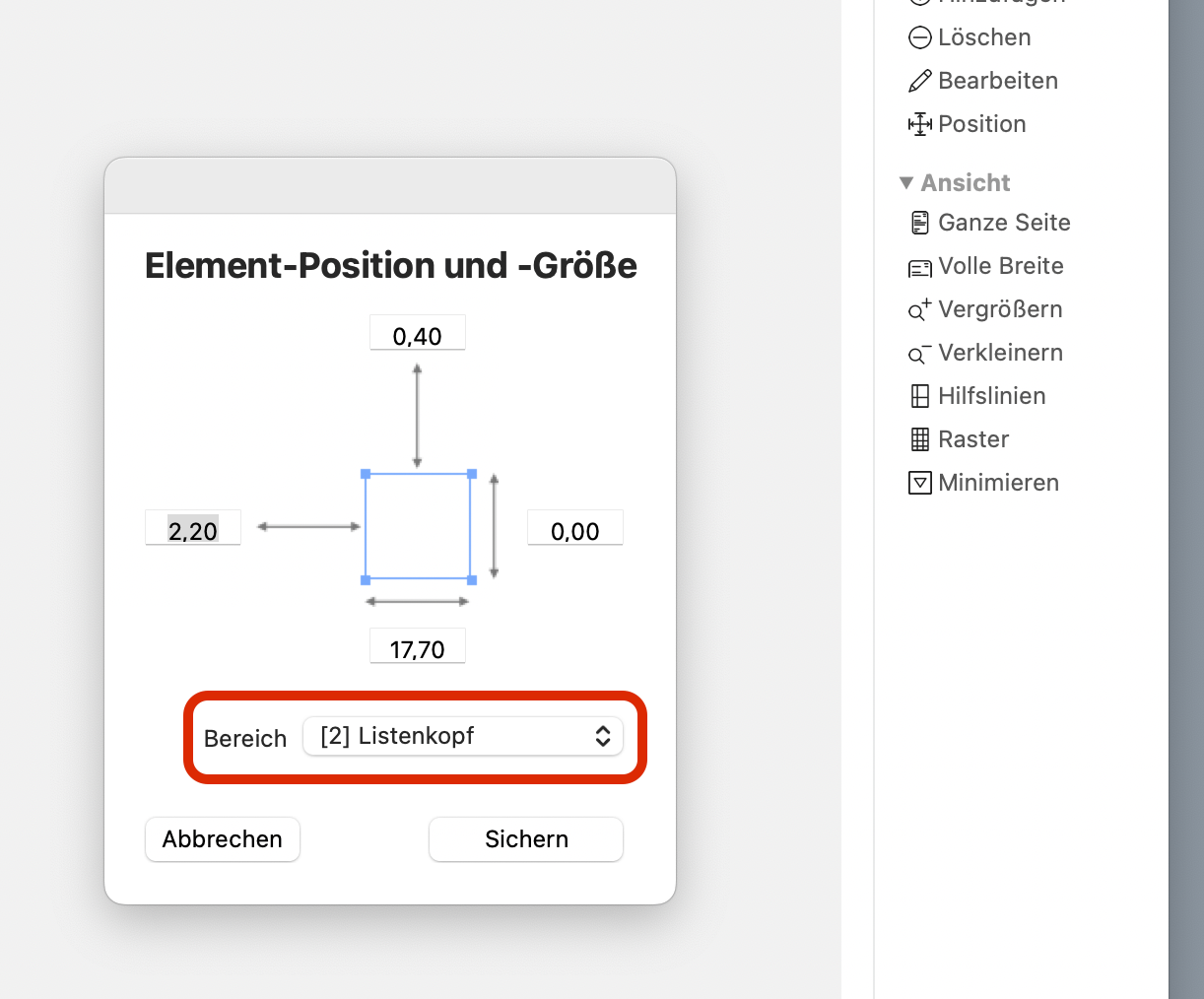 Wurde die neue Trennlinie denn auch dem Listenkopf zugwiesen? Mit der Position kann die Elementen-Position exakt platziert werden. Das funktioniert hier zuverlässig. Markiere die Trenlinie, in der rechten Seitenleiste auf Position → Bereich → Listenkopf